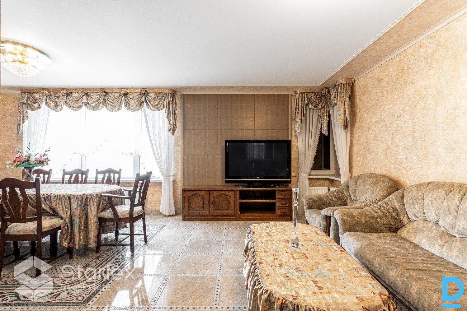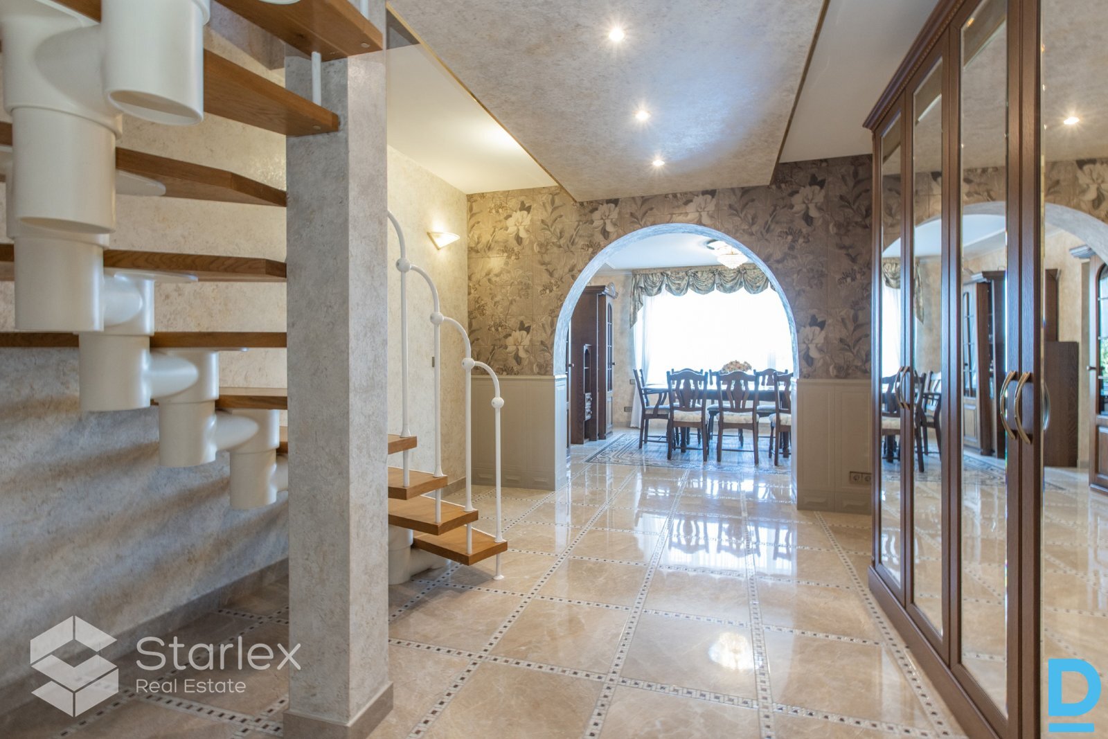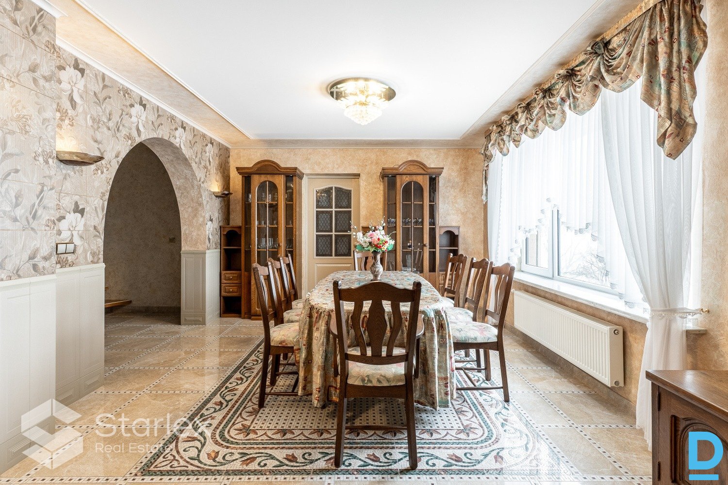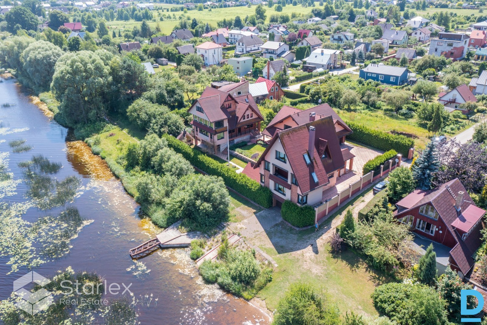 | A unique property for sale right on the banks of the Daugava River, an ideal solution for large families who want to live next to each other or together, but at the same time be each under their own roof. The property offers endless possibilities: can be used as a family residence, a guest house, an office complex or even an exclusive event house with a unique location. First residential house: Total area 295.5 m² 3 floors 4 bedrooms 2 living rooms Fully equipped kitchen with built-in furniture and appliances Bathroom with toilet and separate toilet Sauna Automatically raised and lowered metal blinds on windows Specially equipped boat garage with rope 2 balconies House partially furnished Second residential house: Total area 285.1 m² 3 floors 2 bedrooms 1 hall Kitchen with dining room Turkish bath 2 toilets Balcony Auxiliary rooms Electricity generator Residential building with garage: Total area 236.3 m² 2 floors Garage for 4 cars Equipped kitchen Living room Bedroom Toilet and shower Area and amenities The property is located on a 0.1395 ha plot of land with a fully landscaped area. The property has an asphalt road, automatic gates both in the territory and in the garages. For security, an alarm system and video surveillance are provided. There is a barbecue house and a canopy located on the territory, ideal for summer events and relaxation in the fresh air. Communications City water supply and sewerage Gas heating (separate gas boiler for each building) Emergency power generator Unique advantages Only 10 meters to the Daugava riverbank! The property has a built-in boat dock and rails for launching boats into the water - ideal for water sports enthusiasts or those who appreciate a relaxing vacation by the water. All buildings have been commissioned, which means that the property is fully prepared for use and meets all construction standards. | |