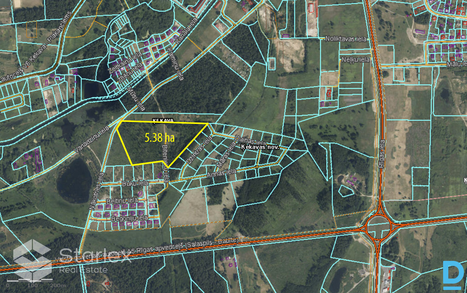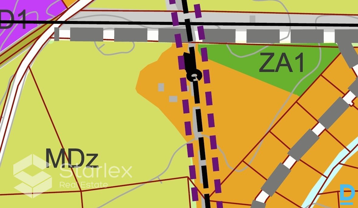Tiek pārdots zemesgabals ar lielisku atrašanās vietu Ķekavas pagastā (robežojoties ar Ķekavu). Zemesgabala kopējā platība ir 5.38 ha. Piebraukšana zemesgabalam no A5 autoceļa Rīgas apvedceļa (Salaspils-Babīte), nogriežoties uz Nākotnes ielu. Zemesgabalam pa vidu iet gāzes vads. Blakus zemesgabalam ir attīstīts savrupmāju ciemats. Netālu atrodas Ķekavas ezers. Saskaņā ar Ķekavas pagasta teritorijas plānojuma teritorijas izmantošanas un apbūves noteikumiem, zemesgabalam atļautā izmantošana ir sekojoša: 1) Mazstāvu dzīvojamās apbūves teritorijas (DzM) - primārais zemes izmantošanas veids ir savrupmāju, dvīņu māju, rindu māju un mazstāvu daudzdzīvokļu namu dzīvojamā apbūve, bet sekundārais - cita atļautā izmantošana. Jaunizveidojamā zemesgabala minimālā platība savrupmājai un mazstāvu daudzdzīvokļu namam - 1200 m²; katrai no dvīņu mājām - 600 m²; rindu māju sekcijai - 300 m²; sabiedriskajiem un darījuma objektiem - pēc funkcionālās nepieciešamības. Zemesgabala maksimālais apbūves blīvums: savrupmāju un dvīņu māju apbūvei - 30%; rindu māju apbūvei - 35%. Apbūves maksimālais augstums: nedrīkst pārsniegt 12 m; pamatojot ar detālplānojumu, apbūves maksimālo augstumu var palielināt līdz 14 m (izņemot DzM2). 2) Mežaparka apbūves teritorijas (MDz) - galvenais zemes un būvju izmantošanas veids ir savrupmāju vai dvīņu māju apbūve ar mežu klātā teritorijā. Jaunizveidojamā zemesgabala minimālā platība savrupmājai - 3000 m²; katrai no dvīņu mājām - 1500 m²; sabiedriskajiem un darījumu objektiem pēc funkcionālās nepieciešamības. Zemesgabala maksimālais apbūves blīvums: apbūves blīvumu apbūves noteikumi nenosaka. Apbūves maksimālais augstums: nedrīkst pārsniegt 10 m; pieļaujams vertikāls arhitektonisks akcents līdz 12 m. 3) Atklāto telpu (zaļās) teritorijas (Z). Labs investīciju objekts! |