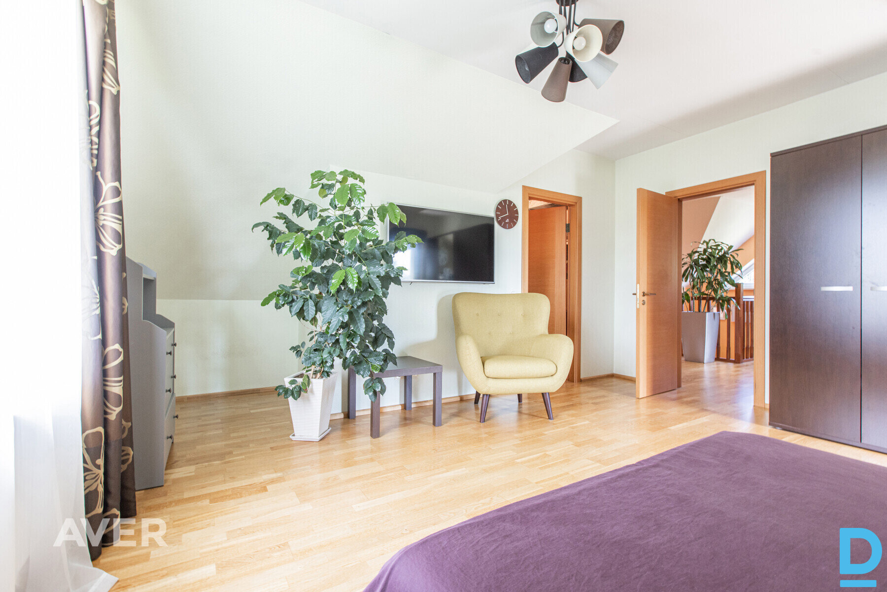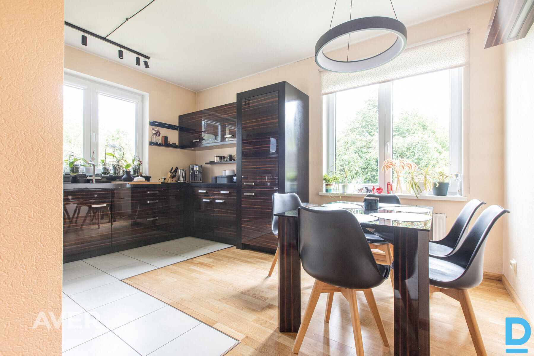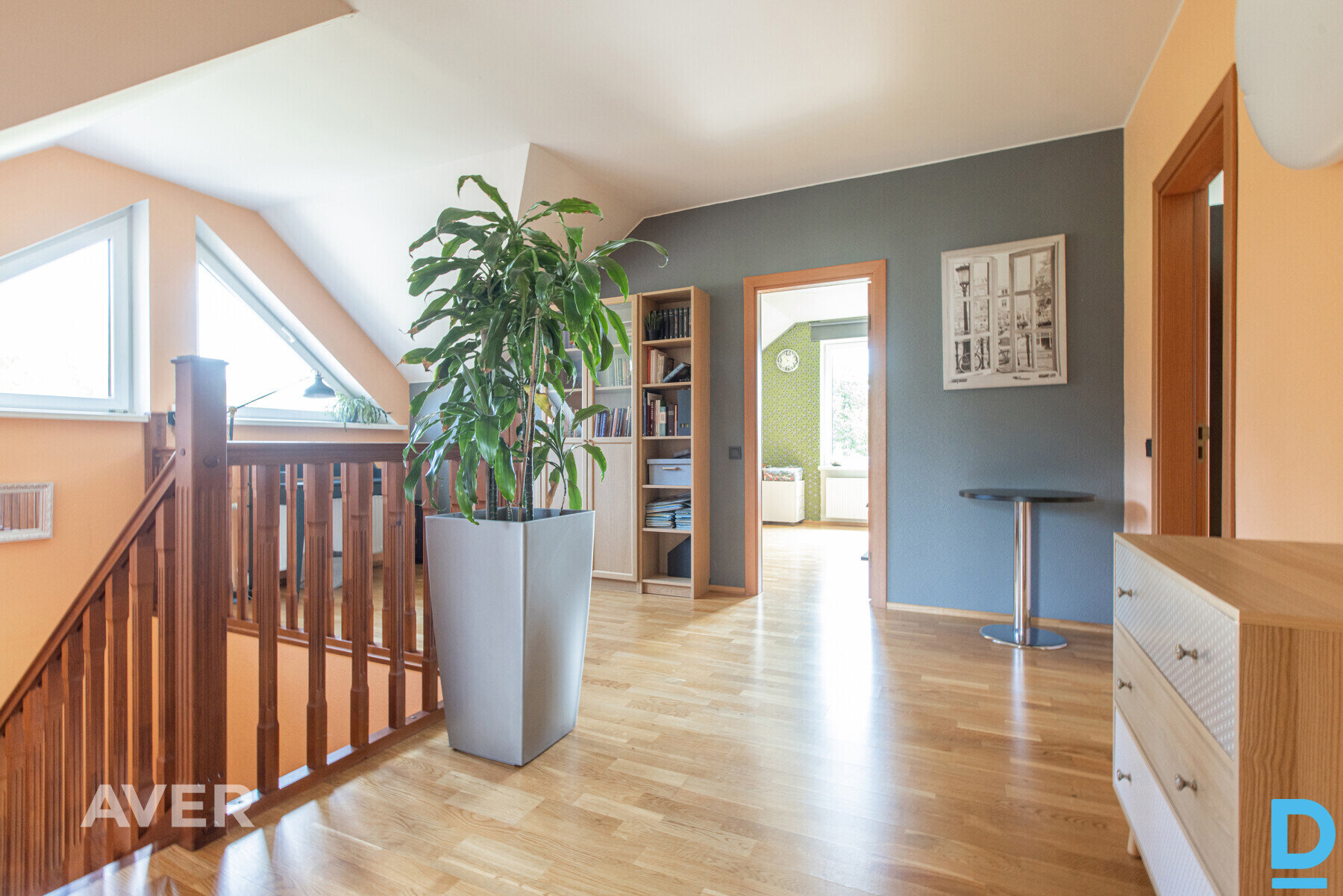 Pārdod funkcionālu un energoefektīvu privātmāju, celta 2008.gadā. Māja atrodas 20 minūšu brauciena attālumā no Rīgas centra, nodrošinot ērtu piekļuvi pilsētai gan rītos, gan vakaros. Galvenās īpašības: Būvniecība: vieglbetona ārsienas un dzelzsbetona pārsegumi. Energoefektivitāte: ēkas energoefektivitātes klase A. Kopējais elektroenerģijas patēriņš 2024. gadā bija tikai 45 kWh/m², no kuriem apkurei tika patērēti aptuveni 30 kWh/m². Saules paneļi: 2023. gadā uzstādīta 11 kW saules paneļu sistēma ar Enefit starpniecību; gadā saražo aptuveni 9.5 MWh enerģijas. Apkure un ūdens uzsilde: zemes siltumsūknis NIBE 1256s, uzstādīts 2024. gada decembrī. Apkures sezonā siltumsūknis patērē aptuveni 580 kWh/mēnesī. Vidējie elektrības rēķini ziemas mēnešos 160-230 EUR, vasarā 60- 70 EUR, iekļaujot elektroauto uzlādi un ikdienas saimniecības patēriņu. Komunālie pakalpojumi: centrālā pilsētas kanalizācija un augstspiediena ūdensvads. Telpu apraksts: 1. stāvs: pirmajā stāvā ir vairākas funkcionālas telpas, kas nodrošina ērtu un praktisku dzīvošanu. Ieejot mājā - garderobe (4.9 m²) ar iebūvētu skapi. Virtuve, halle, kāpnes (33.8 m²) veido plašu un atvērtu telpu, kas savieno dažādas mājas zonas. Gaiša un plaša dzīvojamā istaba (29.7 m²) ar kamīnu un plašiem logiem, kas paver skatu uz dārzu, no istabas izeja uz terasi. Vēl viena slēgta telpa (16.2 m²) - kabinets/ viesu istaba. Dušas telpa ar wc (4.4 m²), apkures/saimniecības telpa (8.8 m²), garāža (26.6 m²). Vidējais griestu augstums pirmajā stāvā ir 2.8 metri, izņemot garāžu, kur griestu augstums 3.0 m. 2. stāvs: otrajā stāvā kāpņu telpa un halle (16.3 m²), kas savieno dažādas telpas. Šeit ir trīs dzīvojamās istabas, kas nodrošina privātumu un komfortu. Galvenā guļamistaba (21.3 m²) ar izeju uz balkonu (6.1 m²) caur garderobi (6.0 m²) savienota ar vannas istabu (9.4 m²). Vēl divas izolētas istabas 16.2 m²un 11.0 m². Vidējais griestu augstums otrajā stāvā 2.1 metri, izņemot halli un kāpņu telpu, kur griestu augstums 2.6 m. Īpašums atrodas tikai 8 minūšu gājienā no tuvākā pārtikas veikala un minūtes braucinā no degvielas uzpildes stacijas, īpašumam blakus ir Baložu meža takas un Rāmavas parks, kā arī bērnu rotaļlaukumi. 5 minūšu gājienā atrodās sabiedriskā transporta pietura, kur gan starppilsētu gan Rīgas satiksmes transports ved uz Rīgas centru, kur ir izglītības iestādes un visa cita ikdienā nepieciešamā infrastruktūra. Rīgas centrs atrodas 25 minūšu braucienā ar auto vai 42 minūšu braucienā ar sabiedrisko transportu. Pie mājas iekopts košumdārzs un vieta bērnu rotaļām. Plašo teritoriju ikdienā pļauj Husgvarna zāles pļāvējs robots. Šī māja ir ideāla izvēle tiem, kas meklē komfortu, energoefektivitāti un ērtu piekļuvi Rīgai. |