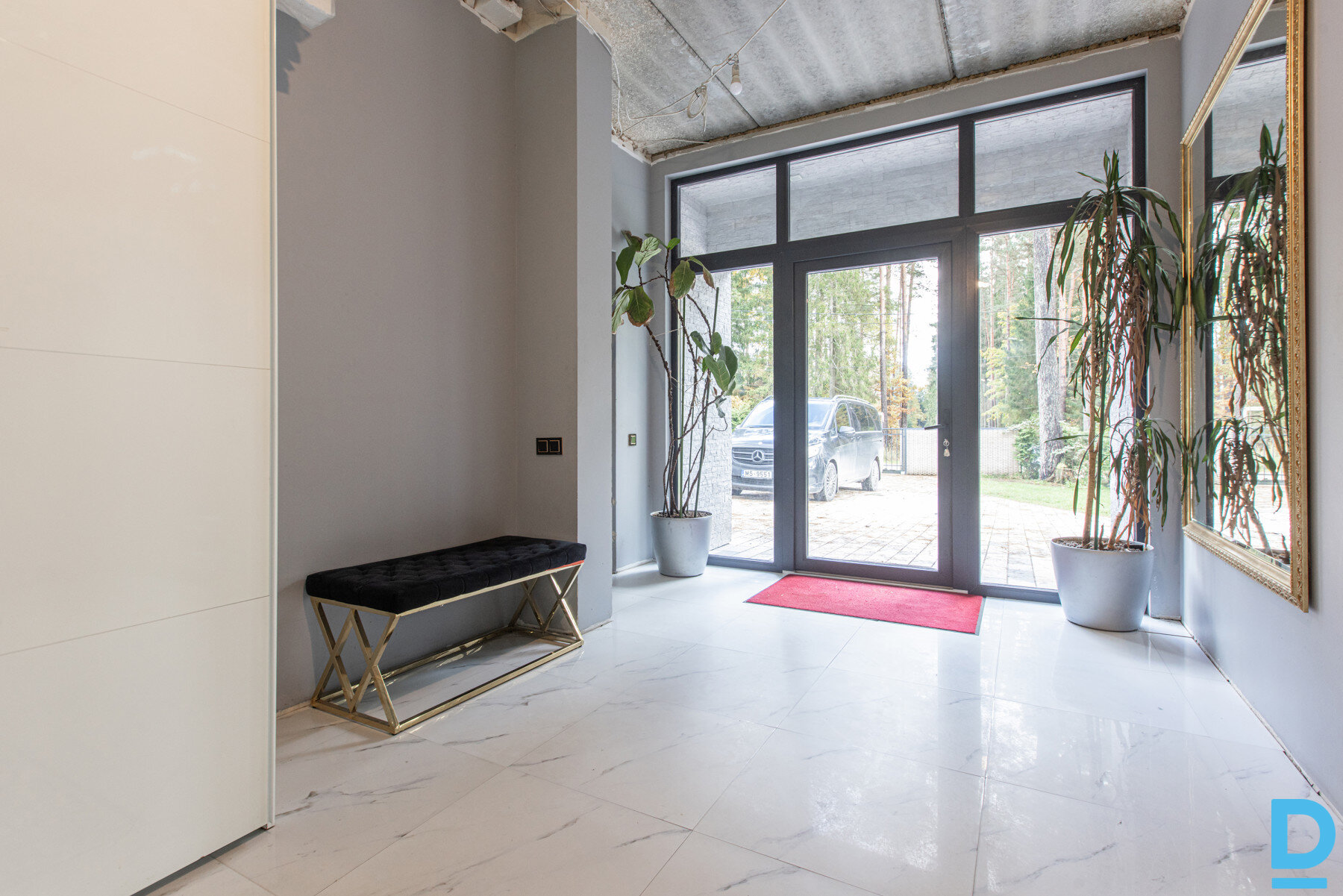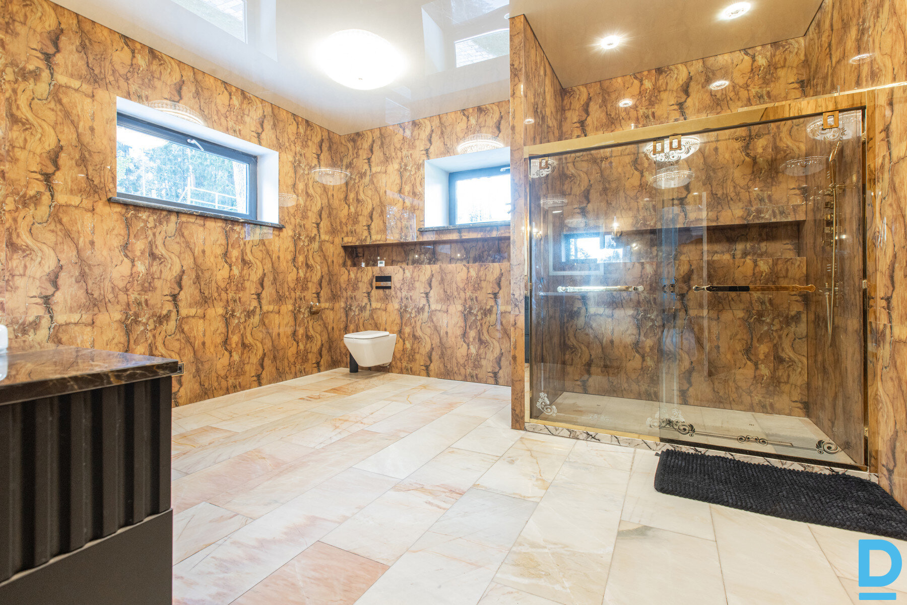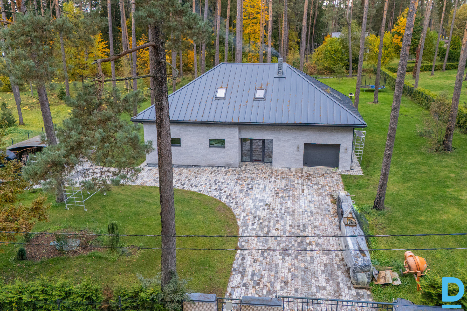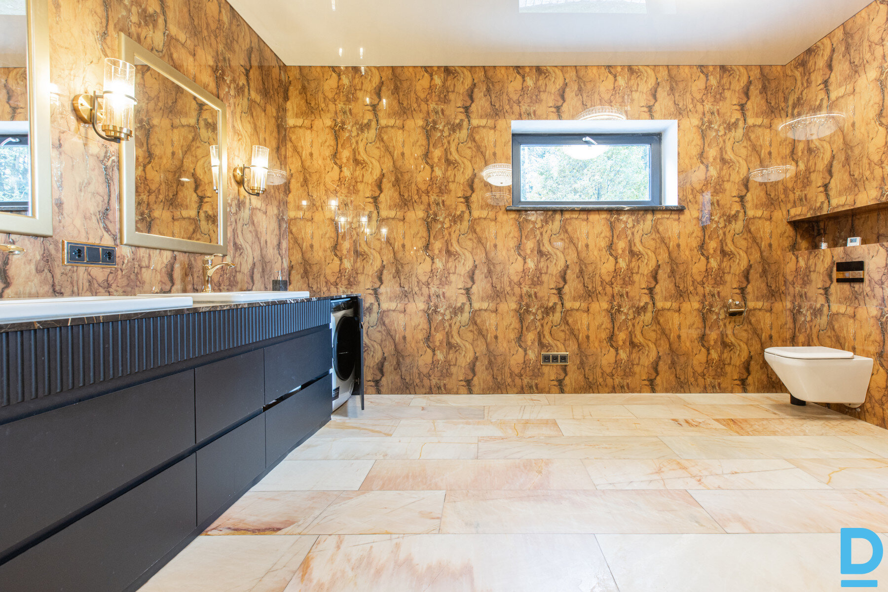 Pārdod izsmalcinātu divstāvu jaunbūvi klusā un zaļā vietā ar plašu zemes gabalu un augstvērtīgiem apdares materiāliem. Sakarā ar dzīvesvietas maiņu tiek piedāvāta kvalitatīvi būvēta un energoefektīva māja, kas apvieno komfortu, estētiku un mierīgu dzīves vidi. Interjers ir gandrīz pabeigts, atstājot vietu jaunajam īpašniekam pievienot pēdējos individuālos akcentus. Mājai atlicis veikt dažus iekšējos apdares darbus, kuru veikšanu var uzņemties īpašnieks pēc savstarpējas vienošanās. Īpašums atrodas mierīgā un zaļā apkārtnē ar skatu uz simtgadīgām priedēm. Kopējā zemes platība ir 3870 kvadrātmetri, kas sniedz pilnīgu privātumu un plašas iespējas papildu labiekārtošanai. Pie mājas izbūvēta 50 kvadrātmetru terase, kur var baudīt rīta kafiju vai saulrietus. Ēka ir rūpīgi nosiltināta, jumtam izmantotas kvalitatīvas skārda loksnes, kas nodrošina ilgmūžību un harmonisku izskatu. Apdarei izmantoti augstvērtīgi dabīgie materiāli. Apgaismotas trepes veidotas no oniksa – pusdārgakmens, kas rada iespaidīgu gaismas spēli un piešķir interjeram greznumu. Virtuvē iestrādāta Indijas granīta virsma, vannasistabās, palodzēs un grīdās izmantots dabīgais marmors, kas turpinās arī bruģī pie mājas un terases. Vārtu stabi veidoti no travertīna, bet flīzes rotā unikāli ornamentāli raksti, kas piešķir mājai individuālu raksturu. Mājas komfortu nodrošina pārdomāti tehniskie risinājumi. Apkure tiek nodrošināta ar Centrometal katlu, kas darbojas ar granulām vai malku – ekonomisks un elastīgs risinājums. Visās telpās ierīkotas siltās grīdas ar iespēju individuāli regulēt temperatūru. Ir izbūvēta auto nojume un garāža ar marmora grīdu, kā arī vietējā kanalizācija. Infrastruktūra ir ērta un pieejama. Sabiedriskā transporta pietura atrodas aptuveni 750 metru attālumā, bet divu minūšu braucienā pieejama skola, lielveikals, aptieka, pakomāti un citi ikdienā nepieciešami pakalpojumi. Tikai piecu minūšu braucienā atrodas Riekstu kalns, savukārt līdz Rīgas centram var nokļūt aptuveni 30 minūtēs ar automašīnu. Zvaniet un vienosimies par apskati jebkurā jums ērtā laikā. Продается изысканный двухэтажный новострой в тихом и зелёном месте с просторным земельным участком и высококачественной отделкой. В связи с переездом предлагается качественно построенный и энергоэффективный дом, который сочетает комфорт, эстетику и спокойную жилую среду. Интерьер практически завершен, оставляя новому владельцу возможность добавить последние индивидуальные акценты. В доме осталось выполнить несколько внутренних отделочных работ, которые могут быть выполнены владельцем по взаимной договоренности. Объект расположен в тихом и зелёном районе с видом на столетние сосны. Общая площадь участка составляет 3870 квадратных метров, что обеспечивает полную приватность и широкие возможности для дополнительного благоустройства. При доме оборудована терраса площадью 50 квадратных метров, где можно наслаждаться утренним кофе или закатами. Здание тщательно утеплено, на крыше использованы качественные листы металла, что обеспечивает долговечность и гармоничный вид. Для отделки использованы высококачественные натуральные материалы. Освещённая лестница выполнена из оникса — полудрагоценного камня, создающего впечатляющую игру света и придающего интерьеру роскошь. На кухне установлена столешница из индийского гранита, в ванных комнатах, на подоконниках и полах использован натуральный мрамор, продолжающийся также на мощении у дома и террасы. Столбы ворот выполнены из травертина, а плитка украшена уникальными орнаментальными рисунками, придающими дому индивидуальный характер. Комфорт дома обеспечен продуманными техническими решениями. Отопление осуществляется котлом Centrometal на пеллетах или дровах — экономичное и гибкое решение. Во всех помещениях установлены тёплые полы с возможностью индивидуальной регулировки температуры. Также есть навес для автомобиля и гараж с мраморным полом, а также местная канализация. Инфраструктура удобная и доступная. Остановка общественного транспорта находится примерно в 750 метрах, а в двух минутах езды расположены школа, супермаркет, аптека, постаматы и другие необходи