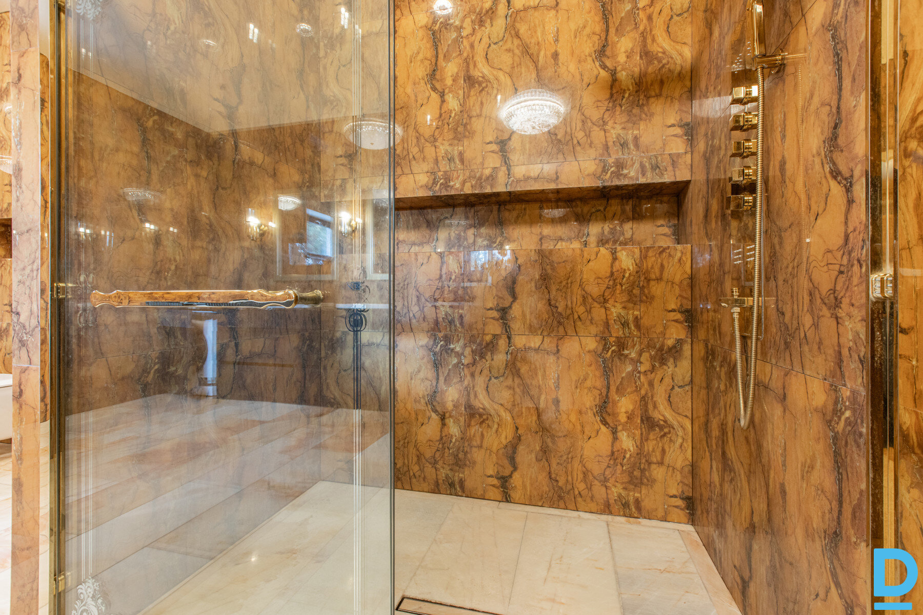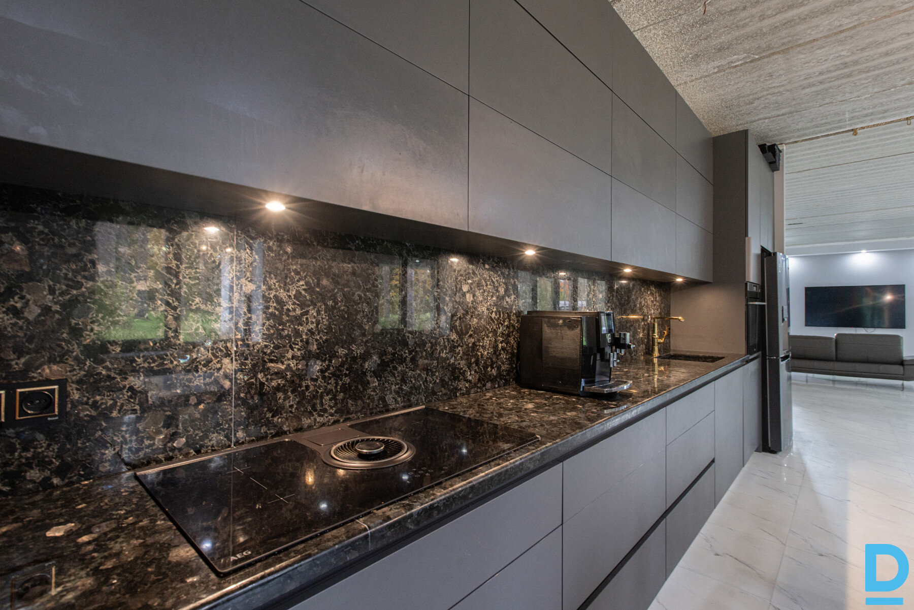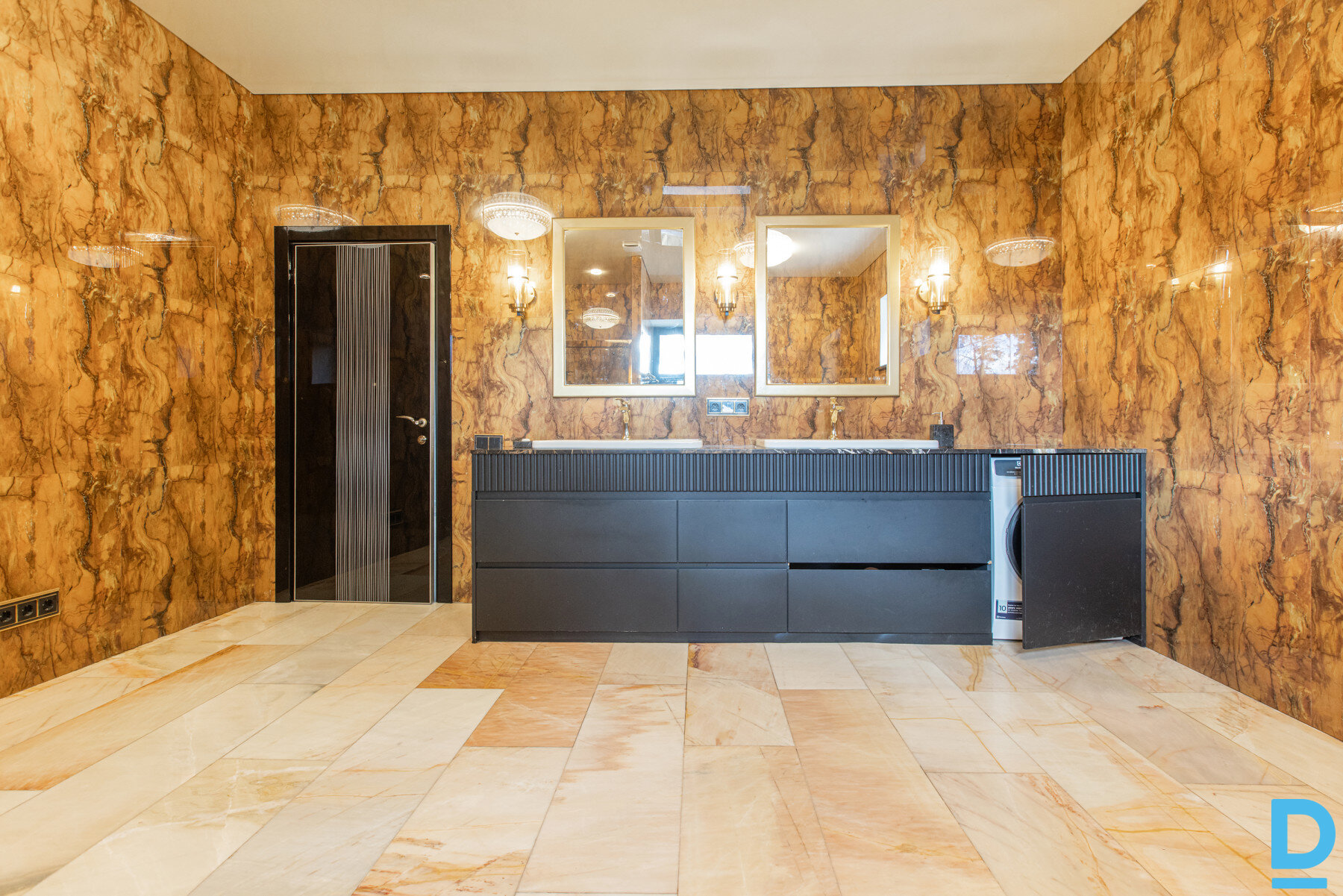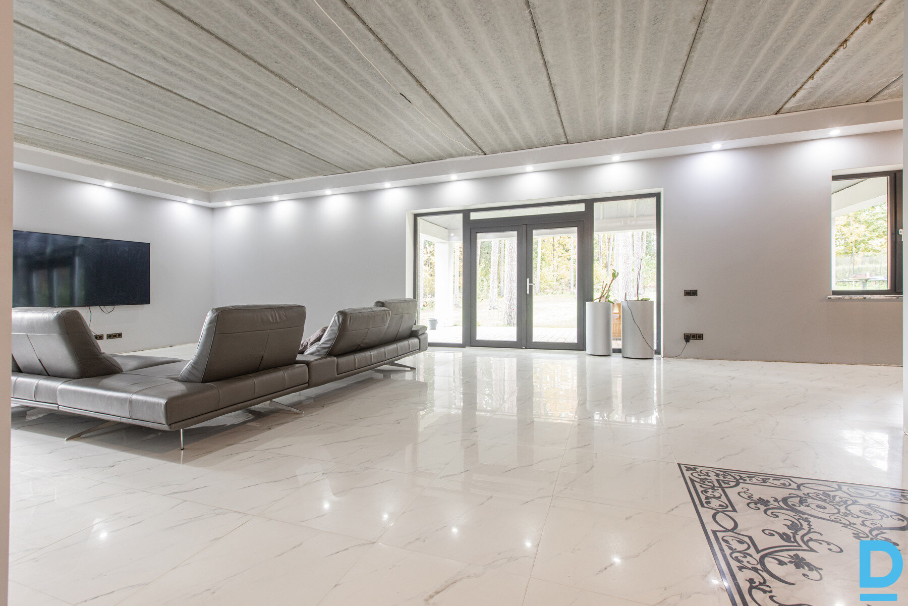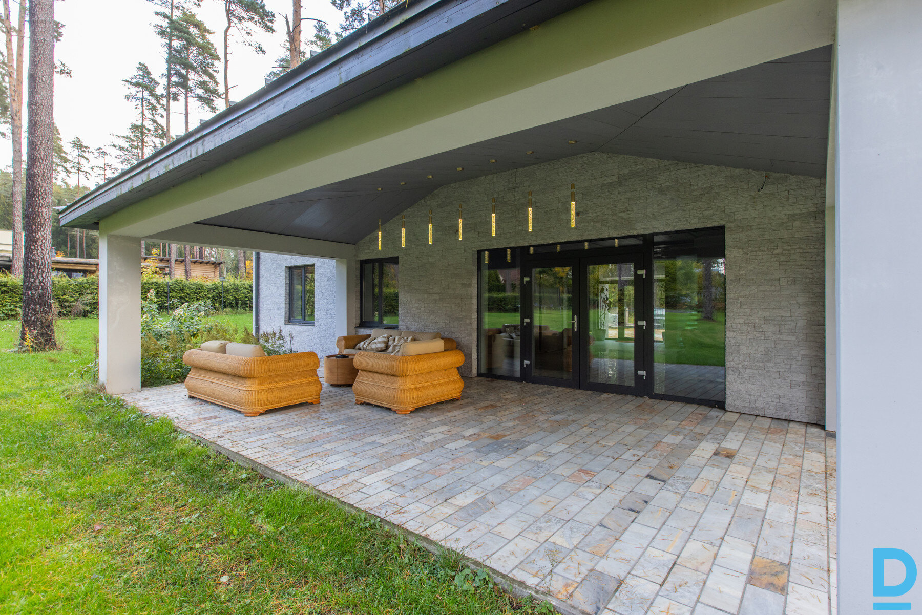 Pārdod izsmalcinātu divstāvu jaunbūvi klusā un zaļā vietā ar plašu zemes gabalu un augstvērtīgiem apdares materiāliem. Sakarā ar dzīvesvietas maiņu tiek piedāvāta kvalitatīvi būvēta un energoefektīva māja, kas apvieno komfortu, estētiku un mierīgu dzīves vidi. Interjers ir gandrīz pabeigts, atstājot vietu jaunajam īpašniekam pievienot pēdējos individuālos akcentus. Mājai atlicis veikt dažus iekšējos apdares darbus, kuru veikšanu var uzņemties īpašnieks pēc savstarpējas vienošanās. Īpašums atrodas mierīgā un zaļā apkārtnē ar skatu uz simtgadīgām priedēm. Kopējā zemes platība ir 3870 kvadrātmetri, kas sniedz pilnīgu privātumu un plašas iespējas papildu labiekārtošanai. Pie mājas izbūvēta 50 kvadrātmetru terase, kur var baudīt rīta kafiju vai saulrietus. Ēka ir rūpīgi nosiltināta, jumtam izmantotas kvalitatīvas skārda loksnes, kas nodrošina ilgmūžību un harmonisku izskatu. Apdarei izmantoti augstvērtīgi dabīgie materiāli. Apgaismotas trepes veidotas no oniksa – pusdārgakmens, kas rada iespaidīgu gaismas spēli un piešķir interjeram greznumu. Virtuvē iestrādāta Indijas granīta virsma, vannasistabās, palodzēs un grīdās izmantots dabīgais marmors, kas turpinās arī bruģī pie mājas un terases. Vārtu stabi veidoti no travertīna, bet flīzes rotā unikāli ornamentāli raksti, kas piešķir mājai individuālu raksturu. Mājas komfortu nodrošina pārdomāti tehniskie risinājumi. Apkure tiek nodrošināta ar Centrometal katlu, kas darbojas ar granulām vai malku – ekonomisks un elastīgs risinājums. Visās telpās ierīkotas siltās grīdas ar iespēju individuāli regulēt temperatūru. Ir izbūvēta auto nojume un garāža ar marmora grīdu, kā arī vietējā kanalizācija. Infrastruktūra ir ērta un pieejama. Sabiedriskā transporta pietura atrodas aptuveni 750 metru attālumā, bet divu minūšu braucienā pieejama skola, lielveikals, aptieka, pakomāti un citi ikdienā nepieciešami pakalpojumi. Tikai piecu minūšu braucienā atrodas Riekstu kalns, savukārt līdz Rīgas centram var nokļūt aptuveni 30 minūtēs ar automašīnu. Zvaniet un vienosimies par apskati jebkurā jums ērtā laikā. Продается изысканный двухэтажный новострой в тихом и зелёном месте с просторным земельным участком и высококачественной отделкой. В связи с переездом предлагается качественно построенный и энергоэффективный дом, который сочетает комфорт, эстетику и спокойную жилую среду. Интерьер практически завершен, оставляя новому владельцу возможность добавить последние индивидуальные акценты. В доме осталось выполнить несколько внутренних отделочных работ, которые могут быть выполнены владельцем по взаимной договоренности. Объект расположен в тихом и зелёном районе с видом на столетние сосны. Общая площадь участка составляет 3870 квадратных метров, что обеспечивает полную приватность и широкие возможности для дополнительного благоустройства. При доме оборудована терраса площадью 50 квадратных метров, где можно наслаждаться утренним кофе или закатами. Здание тщательно утеплено, на крыше использованы качественные листы металла, что обеспечивает долговечность и гармоничный вид. Для отделки использованы высококачественные натуральные материалы. Освещённая лестница выполнена из оникса — полудрагоценного камня, создающего впечатляющую игру света и придающего интерьеру роскошь. На кухне установлена столешница из индийского гранита, в ванных комнатах, на подоконниках и полах использован натуральный мрамор, продолжающийся также на мощении у дома и террасы. Столбы ворот выполнены из травертина, а плитка украшена уникальными орнаментальными рисунками, придающими дому индивидуальный характер. Комфорт дома обеспечен продуманными техническими решениями. Отопление осуществляется котлом Centrometal на пеллетах или дровах — экономичное и гибкое решение. Во всех помещениях установлены тёплые полы с возможностью индивидуальной регулировки температуры. Также есть навес для автомобиля и гараж с мраморным полом, а также местная канализация. Инфраструктура удобная и доступная. Остановка общественного транспорта находится примерно в 750 метрах, а в двух минутах езды расположены школа, супермаркет, аптека, постаматы и другие необходи